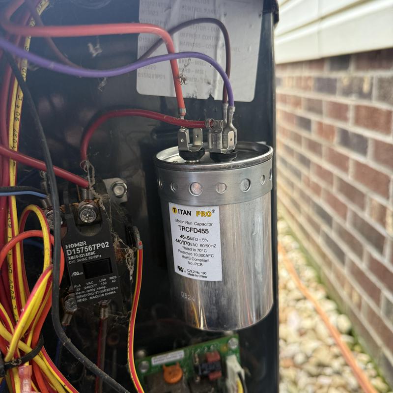 Taylored Air replaced a faulty capacitor in an outdoor HVAC unit to restore cooling performance in Lincolnton, North Carolina. The system resumed normal cooling after the repair.