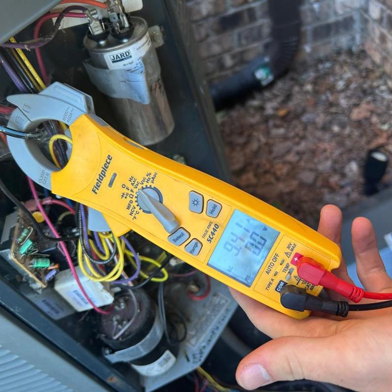 Taylored Air inspected an HVAC system in Lincolnton, NC on October 16, 2025. They tested the defrost cycle and auxiliary heat function, verified refrigerant levels, and checked capacitor values, confirming the system operates efficiently for homeowner comfort.