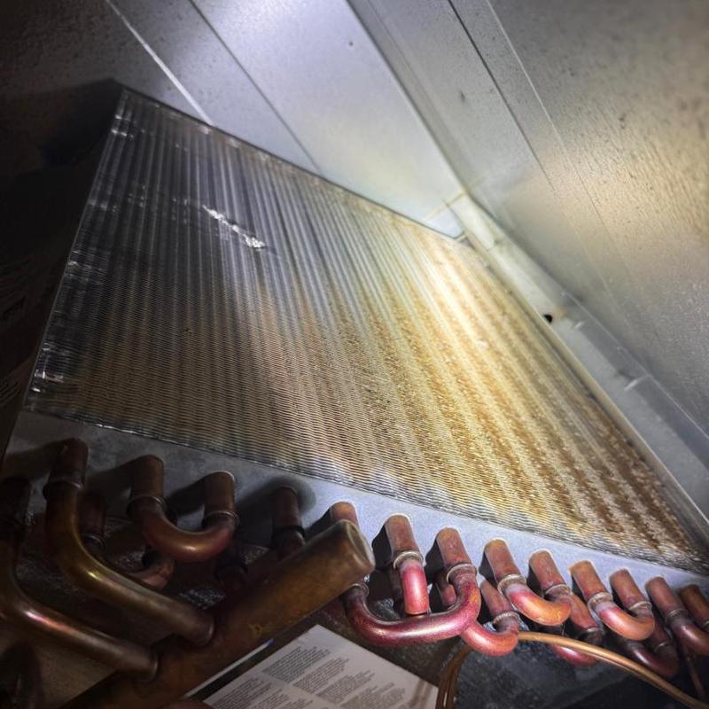 Taylored Air completed spring AC maintenance in Lincolnton, North Carolina. The technician cleaned a dirty evaporator coil and confirmed that the system cooled properly. Regular maintenance helps keep air conditioning systems efficient and operational.